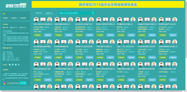 西京网讯:为做好我校2018届毕业生就业工作,同时为用人单位和广大毕业生搭建更加广阔的交流平台,西京学院联合陕西省高等学校毕业生就业服务中心和211校招网举办“西京学院2018届毕业生首场网络视频招聘会”,本次网络视频招聘会由陕西省高等学校毕业生就业服务中心主办,西京学院就业创业中心承办,西京学院万钧书院、西京学院万钧书院就业创业指导中心、211校招网协办。以网络招聘会场+视频面试的形式开展。