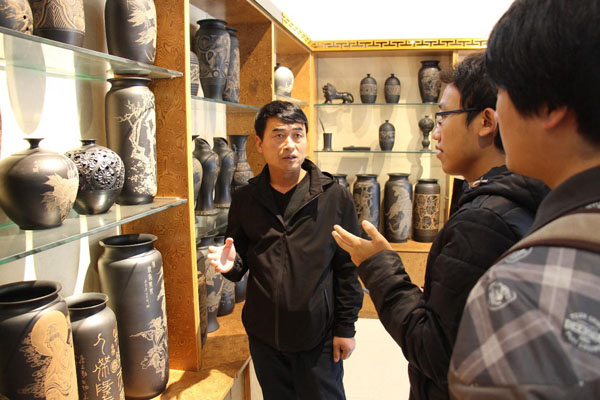 据悉,黄河黑陶文化传播为我校2017年国家级大学生创新创业训练计划项目,该项目主要是对陕北文化创意产业—黄河黑陶文化艺术品的营销与推广,打造黄河黑陶文化的特色品牌,提升延安地区的文化艺术领域知名度。通过线上、线下相互配合,推广艺术大师的黑陶艺术品,并根据用户的独特需求设计制作出创意DIY的黑陶创意产品。将黑陶文化艺术品展现在消费者面前,使黄河黑陶为更多人所知,可以提升延安地区的知名度与美誉,提升延安地区创意文化传播的核心竞争力。