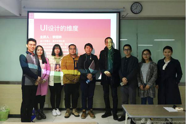 随后,李冠林博士和同学们进行了深入的交流,从UI设计对于视觉传达设计专业的重要性及相关课程的设置等方面,列举了很多范例并进行了专业剖析,学生收获很大。