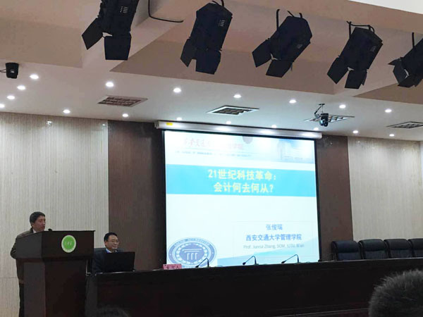 西京网讯:近日,西安交通大学管理学院副院长、博士生导师张俊瑞教授做客西安财经学院,为来自全省20余所高校共计240名师生做了题为“21世纪科技革命:会计何去何从”的主题报告,会议由西安财经学院管理学院院长吴旺延主持,我校应用会计系李阳艳老师参会。