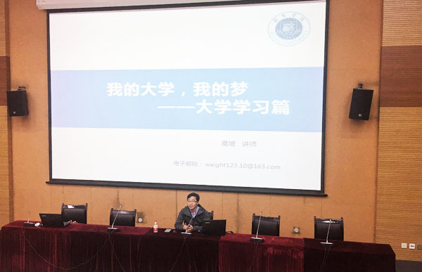 此次讲座以“我的大学我的梦——大学学习篇”为伊始,高坡老师就学生的大学学习展开深刻剖析,解决了大一新生们因进入人生新阶段而产生的种种困惑的问题。首先高坡老师以《梦的解析》一书引入本次讲座的主体内容,随后从上大学的必要性、上大学学习的内容、上大学的学习方法这三个方面生动详细的给予了说明,还通过联系生活实际讲述具体事例,使同学们更加深刻的理解了上大学的意义,懂得学什么以及如何学。
