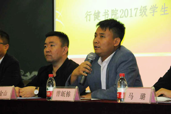 最后,曾皈栋作了语重心长的发言。他说,成为学生干部是充满荣誉感和自豪感的,他要求大家在生活中要找准自己的人生定位,以身作则,成为同学们学习的风向标。他提出要做好一名学生才能成为一名好的学生干部,每一位学生干部都应该具有强烈的责任感,唯有责任心可以让我们受到他人尊重,也唯有责任心可以帮助我们去克服在工作中遇到的种种困难。