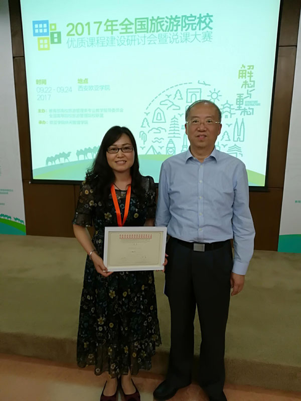 据悉,说课大赛参赛教师共89名,分为三个小组,每组设一等奖1名,二等奖2名,三等奖3名。我校外国语学院酒店管理专业、旅游管理专业丁爱芹、马妍两名教师代表参赛。丁爱芹的《导游业务》课程在旅游管理小组42位参赛选手中脱颖而出,获得三等奖,马妍的《中外民俗》课程获得优秀奖。