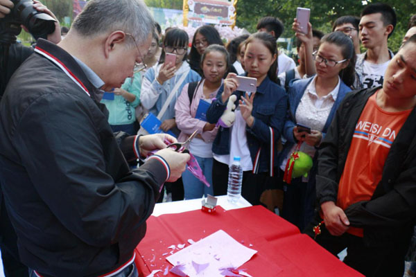 活动邀请到思源文化交流中心研究员,非物质文化遗产保护中心特聘学者,民俗文化大师左其成老师,左老师现场为同学们展示中华传统剪纸技艺,并将剪纸作品赠送在场学生,左老师高超的技艺赢得了现场学生阵阵掌声,并纷纷拍照摄影,记录下这精彩瞬间。