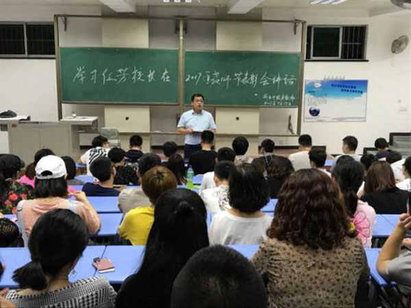 ——主题班会深入学习任芳校长讲话精神。日前,创业书院二十一个行政班级召开学习任芳校长讲话精神的主题班会。会上,辅导员带领全体学生从一年来学校获得的各种荣誉、内涵建设取得的飞跃进步、人才引进方面下的功夫等方面进行了一一讲解。对于校长的发言内容,从深度、广度、围度等方面进行了深刻阐述,同学们时而鼓掌、时而沉思,讲到学校未来的发展规划,大家都能飞速地记到笔记本上,14级电子信息工程专业学生张宗麟说,去年一年,我们参加的“互联网+”大赛,学校从头到尾都给于了强有力地支持,我们不仅获得了校级金奖,而且获得了省级银奖,这些成绩的取得都和校长一年来对我们学生发展的重视分不开,在此我想代表全体获奖学生说一声谢谢校长;14级机械制造及其自动化专业侯伟东同学说,感谢校长给我们提供这么好的学习环境,感谢学校为学生长远发展成立的创业书院,使得我在这个平台上创办了自己的影视传播文化公司,我将继续再接再厉,为学校的快速发展贡献自己的一份力量。