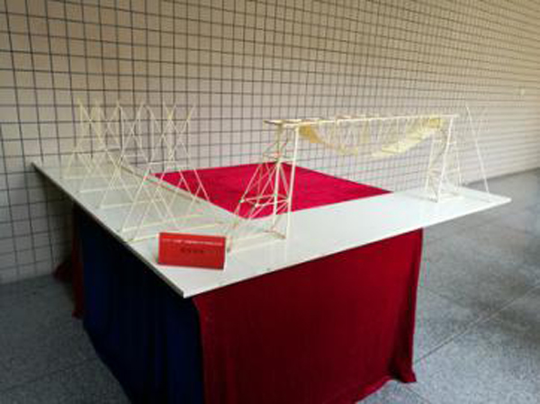 本次大赛命题为“渡槽支承系统结构设计与制作”,历时三天,比赛分为模型制作和模型加载两个环节,累计模型制作时间长达12小时。我校土木工程学院参赛队的作品,名为“张弛有度”。 为了备战本次大赛,由我校土木工程学院副院长梁亚平亲自领队,在土木工程学院青年教师蒲靖和李文翰两位指导老师的悉心指导下,三名参赛队员历经近一个月的准备,从结构选型到有限元软件分析,并经历了多次的模型制作和模型加载尝试以及结构优化等工作。通过本次大赛不仅让学生能够把结构设计的理论知识与实际结构相结合,加深专业知识的理解,同时还有效地培养了学生的创新精神、团队协作意识及实践动手能力。