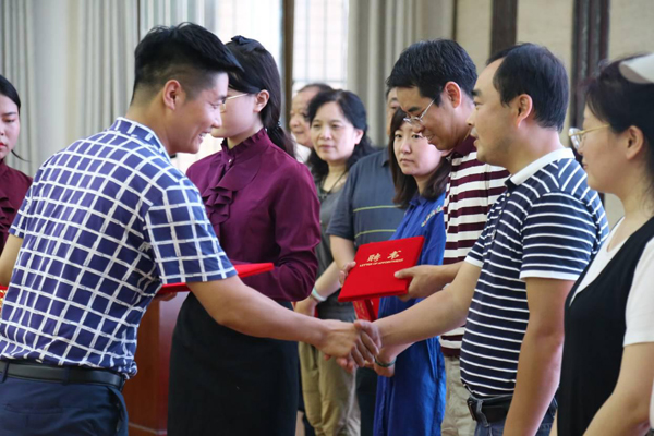 随后,大会进入了最重要的环节--聘任仪式,与会领导先后对各自管中心主任、自管中心指导老师、学长导师、常任导师、学业导师、人生导师颁发聘书。接着,学生自管中心主任代表曹正、学生自管中心指导老师胡佳佳,以及学业导师代表敦建勇教授分别做了发言。最后,张京鹏主任对大会进行了总结。大会在一片庄严的气氛中顺利落下帷幕。