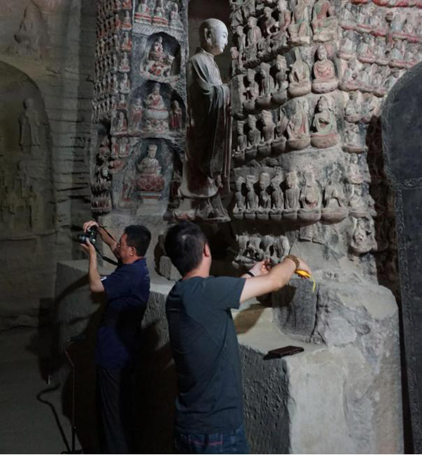 西京网讯:7月—8月,我校设计艺术学院国家社科基金项目课题组在主持人郑文宏带领下,冒着炎炎酷暑,利用暑假假期时间,分3个小组先后到陕北黄陵、富县、甘泉、安塞、志丹、吴起、子长等地进行石窟遗存考察活动。此次考察参与人员有郑文宏、臧卫军、马国良、袁军、赵耀、王磊、刘静,主要针对陕北宋金时期石窟进行原始资料的测量、勘察、数据化、数字化的收集与整理,并按照课题计划有条不紊地持续推进项目的进度。