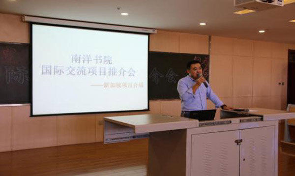 西京网讯:为了进一步推动南洋书院国际交流工作的开展,促进本书院学子对外交流的积极性,在书院院长庞舒月的主持下,9月14日15时在图书馆303报告厅召开了“南洋书院国际交流项目推介会”。教务处国际交流部各项目负责人以及书院全体老师出席参加了本次会议。