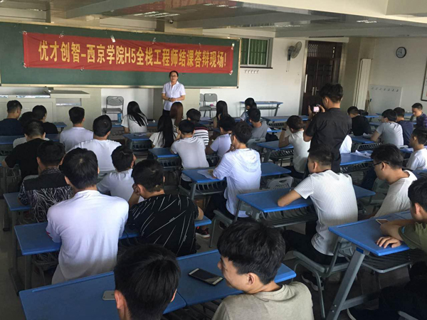 西京网讯:为了给学生提供一个将知识和理论相结合的机会,提升学生专业技术知识及相关基础知识,更好的提高学生的就业竞争力和综合能力。近期,机电技术系与优才创智科技联合举办了全栈工程师实训。机电技术系计算机教研室老师和优才创智科技资深工程师景永新、王加星等对计算机应用技术专业、计算机网络技术专业、移动通信技术专业2015级学生进行实训,并与26日进行了毕业答辩。