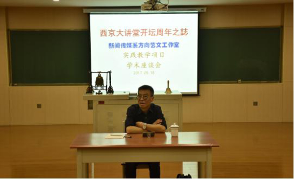 此次听证会由任锐进丰教授回答同学们提出的各种问题。听证会开始,教授振铎,全体学生起立,在同学们热情洋溢的掌声之中敲响学钟六次,以完成《西京大讲堂》开堂一周年誌庆。同学们对讲堂一年来在学校和社会取得的广泛影响作了充分的肯定,并对存在的问题和困难提出恳切的建议和诉求。听证会结束前,大家一致通过由任教授提出的方向艺文工作室16字的实践教学宗旨:自主创意,亲身投入,独立完成,投放市场”。