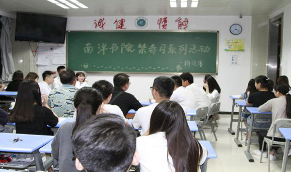 西京网讯:在第30个“6·26”国际禁毒日即将到来之际,由国家禁毒委员会办公室、教育部、共青团中央联合指导,中国禁毒基金会主办的全国首届大学生禁毒辩论赛总决赛在北京圆满举行。决赛的议题“开除吸毒大学生的利与弊”也引起了南洋书院众学子的广泛兴趣。在南洋书院分团委组织下,6月14日关于“开除吸毒大学生的利与弊”辩论赛在1320教室举行。