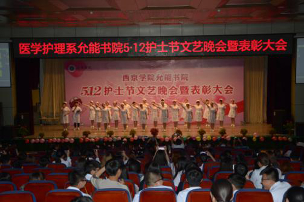 西京网讯:5月12日是第106个国际护士节, 为发扬南丁格尔精神,增强专业凝聚力,展示护理专业学生风采,允能书院于5月11日在小礼堂举办西京学院允能书院“5.12”护士节文艺晚会暨表彰大会。大学生发展与服务中心主任张京鹏、教务二处处长边伟、医学护理系主任张煜星、允能书院院长杨德森及500多名学生参加晚会。张煜星为晚会致开幕词,他说5.12日是所有从事护理工作者的节日,我们祝愿从事护理工作或即将从事护理工作的人节日快乐。