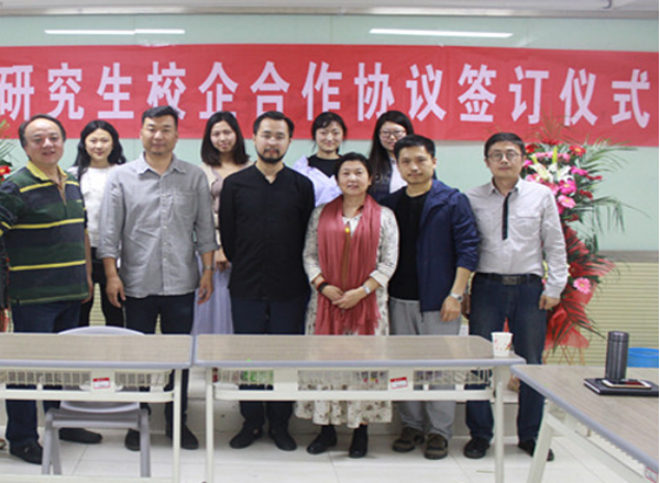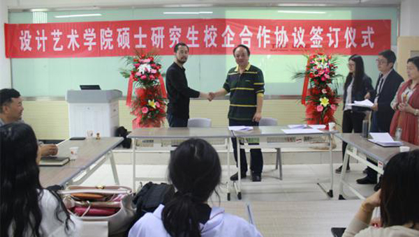 会上,院长臧卫军首先代表学院向前来出席签约仪式的各位企业领导表示热烈欢迎,然后向来宾介绍了设计艺术学院研究生教育的专业设置、学科特色等办学基本情况。随后,校外导师王亚楠及何建强分别对公司的业务项目做了介绍并对研究生的实习计划作出相应的安排。