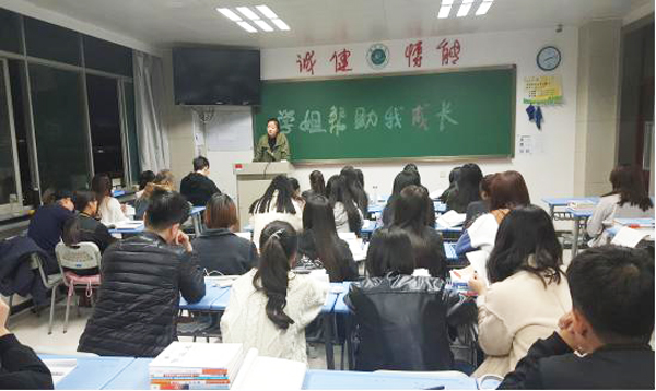——各班级召开“学长助我成长”学习经验交流会。分团委安排即将毕业的品学兼优学长、学姐进入各班级进行学习方法及个人社会实践经验的互动交流。针对当前部分同学对学习方法不得当、目标不明确、意志不坚定、上进心不足等方面进行分析讨论。通过学姐、学长讲述自己大学的求学经历及参加社会实践的切身体验,使同学们对自己的学业有了更深刻的认识,明确了学习任务和目标。