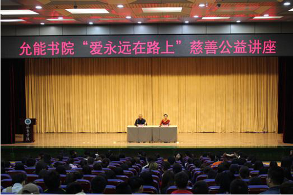 西京网讯:3月16日,允能书院特别邀请陕西省慈善协会“爱心大姐”邱华老师在小礼堂讲授“爱永远在路上”慈善公益讲座。允能书院院长杨德森、全体辅导员及500多同学参与此次公益盛宴。