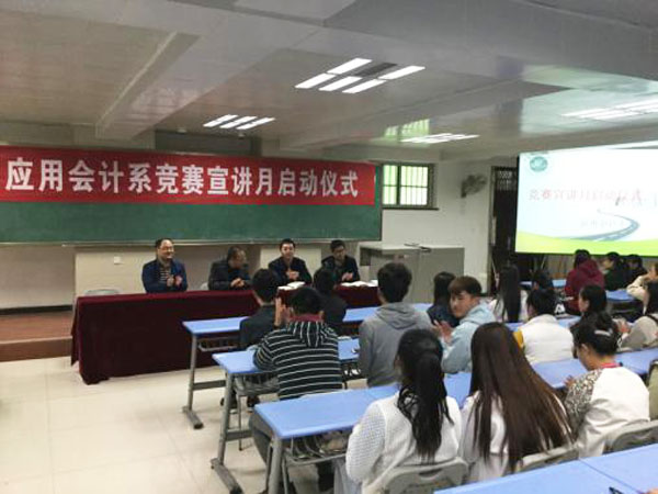 首先李杰主任对应用会计系的所有竞赛一一做简单介绍,让同学们了解了参加竞赛的目的和意义并对竞赛项目有初步了解,其次边伟处长对往届竞赛的突破做了回顾,他借用两会期间李克强总理提出的加强现代体系职业教育,注重竞赛,把竞赛做为高职亮丽的名片以此来说明竞赛的重要性,同时他对同学们强调参加竞赛信心是前提,关键是能力,保障是经验,希望全体同学参加竞赛要有目标、有方向,通过竞赛能够得到锻炼,使自己的职业素养和专业能力同步得到提升,最后王毅科长对高职教育创新发展做了展望,同时就竞赛置换学分等问题向同学们做了详细解读。