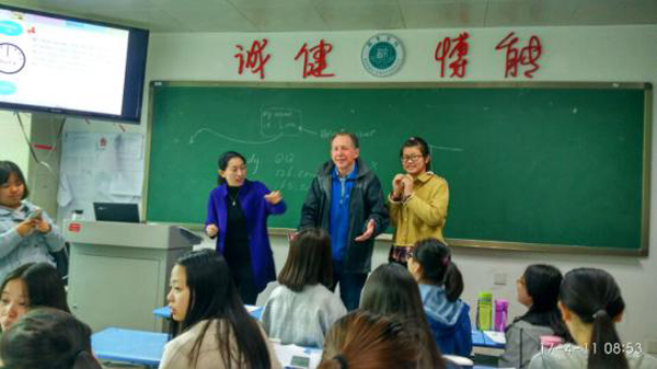 西京网讯:4月11日,在应用会计系和国际交流中心的组织下,我校周李丽老师、ROBERT LEWIS外籍教师和美国交流生LINA FIORITO共同走进会计1608班,为该班学生上了一堂生动的英语课。课堂上,中外老师共同对讲授课程进行了精心的设计,一改传统的教学方式,将普通的教学内容,通过不同的教学方式向同学进行讲授,更是将国外一些先进的教学和学习方式向同学们进行了展现。同学们积极发言、认真讨论、争先恐后的回答问题,课堂气氛异常活跃,掌声不断。