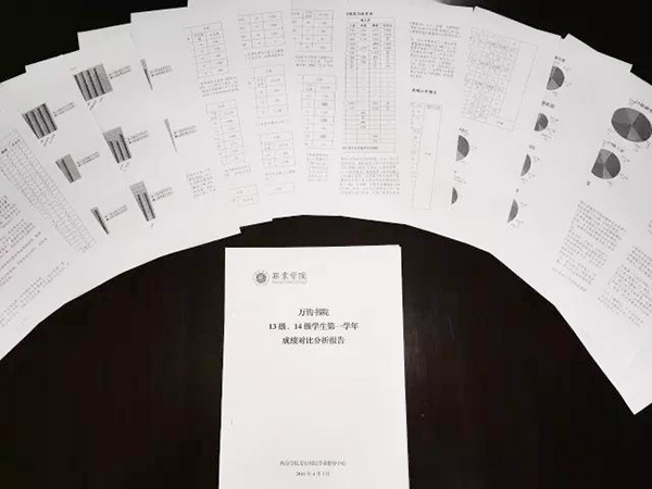 两份《分析报告》,主要通过对书院13级、14级以及15级相同专业课程的比较分析,不仅发现了三个年级各专业在过关率、平均成绩增幅方面有差异性的对比,还针对专业课程的共性问题,比如相关基础课程总体过关率不高、2014级学生学业成绩趋势走向较13级和15级要好等情况,通过数据分析深层次挖掘和剖析了问题所在。