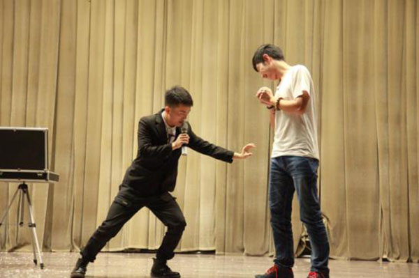 抽奖环节特别邀请到陕西省著名职业魔术师欧阳老师为学生们进行魔术表演,引来声声惊呼。