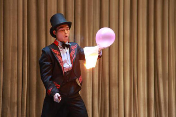 伞耀奇迹、棒与球、奇幻兵团、心界三重门、魔道之手、自闭着说等11项节目,为同学们淋漓尽致的呈现了魔术的魅力,让同学们近距离接触了精彩的魔术世界。