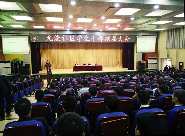 10月19日,允能社区团委学生会换届大会在小礼堂召开。允能社区主任杨德森、学生科科长付平等出席大会。
