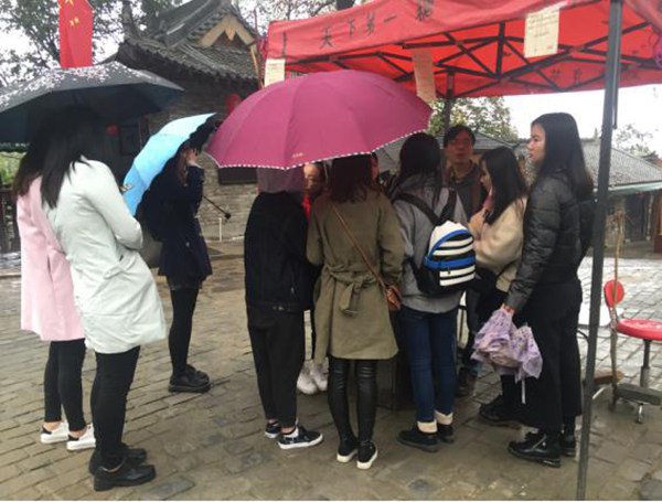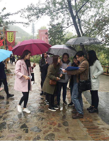 13级和15级学生各分成5个小组分别完成市场调研和仿古建筑考察的实习任务。在调研考察过程中,李晟老师轮流询问每组学生的调研情况,并认真对学生进行辅导与讲解。古城微微细雨,却丝毫没有影响学生的积极性,通过理论学习结合实践认知实习,同学们对专业知识有了更直观深入的认识,同时也促进了实践技能水平的提高。
