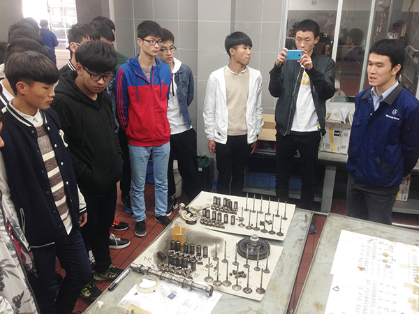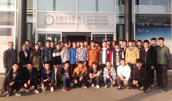 期间,公司的主管经理为同学们热情地讲解了该公司奔驰汽车4S店的企业文化、工作岗位和发展前景,带领同学们依次参观了维修车间、配件库、工位平台、销售前台和展厅布置,并与同学们分享了企业创业历程、创意点和市场盈利点,使同学们对“汽车后市场”的定位有了更加深入的认识。