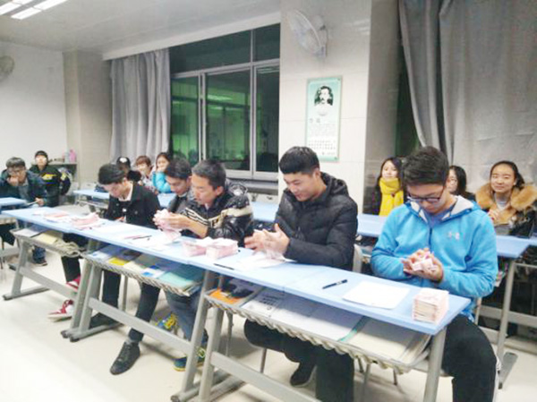 经过激烈角逐,朱佩、盖佳玮两人同时获得了“五指非凡,点石成金”点钞王的称号,所在小组也取得了团体第一名和第二名的好成绩。最后,两位评委老师分别对此次活动作以点评。本次班级风采展示活动圆满举行。