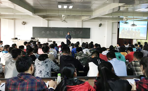 10月19日下午,由土木工程学院举办的题为“中国梦+土木工程前沿问题”学术讲座举行,讲座由马斌教授主讲,土木工程学院院长梁亚平博士主持,来自全校各院系的百余名师生聆听了该场讲座。