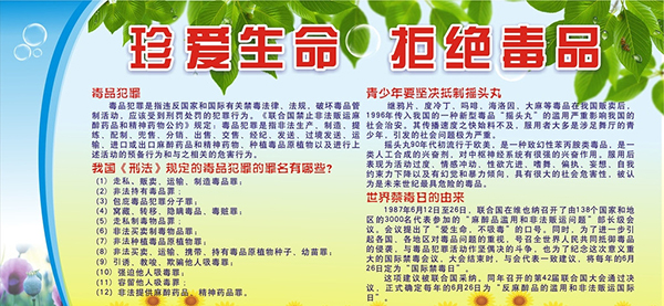 ——召开“远离毒品,走健康人生路”主题班会。班会通过禁毒挂图宣传展示、发放宣传资料、观看禁烟宣传视频以及禁毒、禁烟宣讲等形式,像学生们详细介绍了毒品的危害,宣传了毒品的有关知识及国家有关禁毒、禁烟的法律法规。以事实像同学们生动阐明了吸毒、吸烟不仅危害社会、危害个人和他人健康,还会毁灭家庭,帮助学生们树立了正确的人生观、价值观和法制观。
