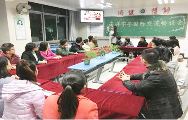 11月24日晚,南洋社区国际交流畅谈会在1240教室举行。学生科科长何权红、辅导员代新杰、张文瀚及参加国际交流的21名学生代表参加了本次畅谈会。