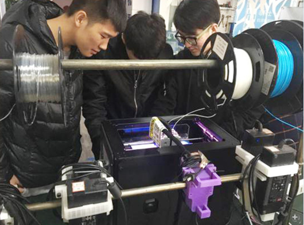期间,同学们还自己动手拆卸、安装机器,维修设备,通过理论联系实践,增强了对3D打印机器的感性认识,加深了对理论知识的理解,激发了同学们对3D打印的兴趣。