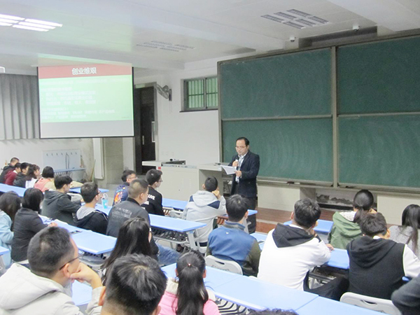 日前,商贸技术系在1121多媒体教室举行了“小时代 新创业”报告会——微信营销的探索与实践,约150余名学生参会。