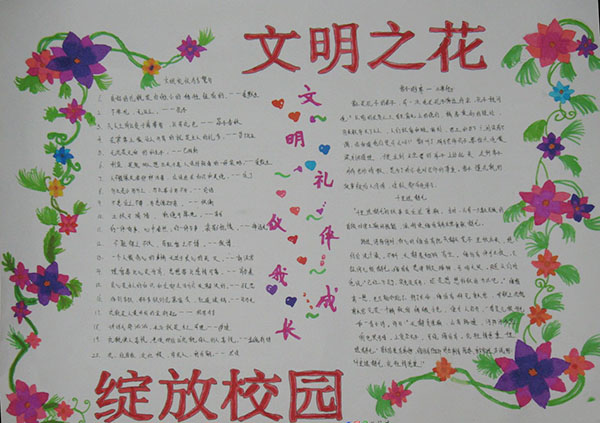 开展“文明礼仪我最优”手抄报展示活动。同学们利用课余时间,积极收集整理有关“文明礼仪”的资料,精心组织,合理排版,一份份精美的以“文明礼仪我最优”为主题的手抄报展示活动,以此来宣传文明礼仪在学习生活中的重要性,更是一个合格大学生综合素质的完美体现。通过活动的开展,引领广大学生切实践行社会主义核心价值观,在活动中形成文明礼仪我最优、文明使者从我开始等赶、比、超的校园文明新风尚。