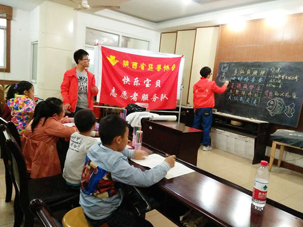 博雅社区青年志愿者前往西安市雁塔区老年大学志愿服务,帮助这里的空巢老人和留守儿童义务劳动和支教。