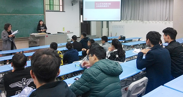 马芮婕对订单班学生的第一期培训课效果给予表扬和肯定,同时对后续的订单班培训与实习提出了新的要求;世联行资深讲师马琳通过《DISC行为指引》为订单班同学分别从自我性格认知、性格特征人群的行为特性分析、DISC人格测试结果在职称中应用等几个方面进行了一次生动的授课,学生们在听课过程中积极参与互动思考,课堂气氛非常活跃。