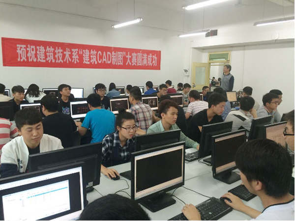 6月1日,建筑技术系第二届“建筑CAD制图”大赛举行。建筑技术系主任王宽仁、指导老师赵文芳、黄晨、吴玺及238名参赛选手参加了大赛开幕仪式。