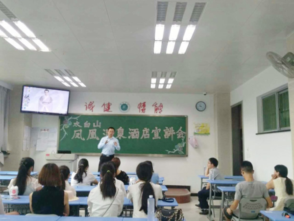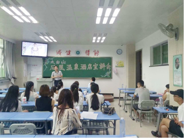 6月14日上午,“太白山凤凰温泉酒店宣讲会”在2号教学楼1133室举行。陕西太白山凤凰温泉酒店有限公司人事部翟经理主讲,管理技术系主任李俊等和2014级、2015级旅游管理专业学生听取了宣讲会,宣讲会为学生实习以及实现校企合作提供了交流平台。期间,参加本次论坛的教师和企业负责人就学生如何实习进行了深入的探讨,签署了旅游管理专业实习基地协议,并接收有意向的部分14级旅游管理专业学生前往酒店顶岗实习。