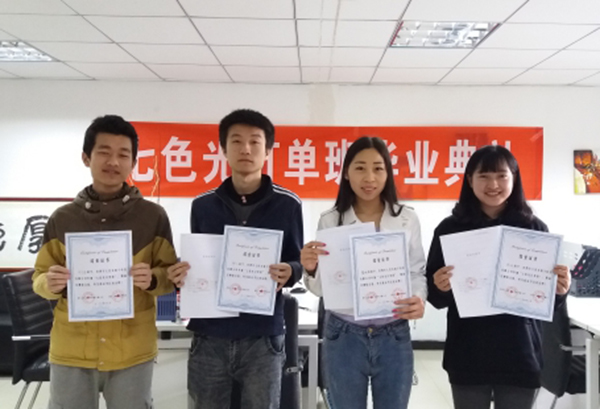 4月7日,“七色光订单班”毕业典礼举行,新闻传媒系张西静主任、西安七色光数字科技有限公司周军总经理共同为学生颁发了订单班结业证书。