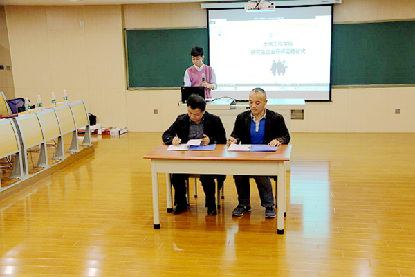 仪式上,蔡红专和刘军生共同签署了“西京学院土木工程学院校企合作培养工程硕士协议书”。随后,蔡红专为刘军生颁发了研究生企业导师聘书。蔡红专谈到,我校培养的研究生为工程硕士,加强工程硕士在企业实习实践力度是我校研究生培养的重要特色之一,我校研究生的实习实践得到了陕西建筑科学研的大力支持,土木工程学院能聘请到刘军生副院长这样高水平的企业导师,一定会为我校研究生培养再添动力。刘军生表示,西京学院作为国内民办高校的领头羊,为我国民办高等教育做出了巨大贡献,自己能有幸成为企业导师也非常荣幸,希望在日后能加强多方位的合作,共同培养出更多的优秀人才。