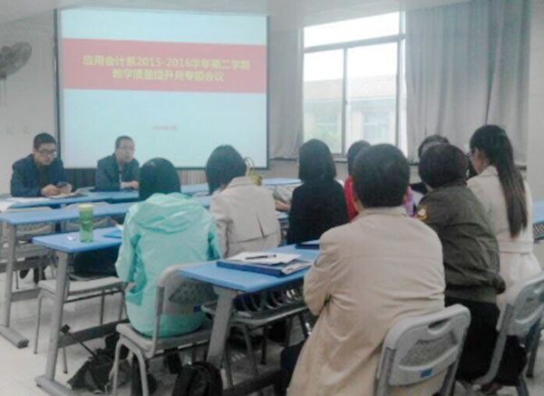 为全面提升教育教学质量,规范教学过程和教学管理工作,应用会计系4月5日下午召开了“教学质量提升月”启动仪式,系主任李杰、教务科长王毅及全体专职教师、教学管理人员参加,会议由王毅主持。
