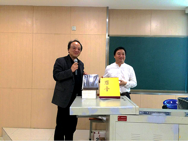 讲座结束后,罗宁馆长向学校赠送了他个人画册及文献集,臧卫军代表学校接受了馈赠,并回赠西京学院纪念品。臧卫军表示,希望今后增进与陕西省美术博物馆的互动交流,逐步探讨实施以美术馆为课堂的教学模式,让更多的学生走进美术馆博物馆去获得课堂以外的审美认知和艺术感受。
