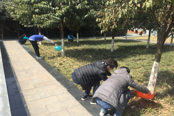 3月11日下午,在精英学生孵化工作室的成员带领下,同学们自觉组成了绿化校园的志愿者队伍,开始护养绿植、净化校园的活动。同学们给树木浇水,捡起草坪上、树林间丢弃的垃圾等。大家纷纷表示,虽然只是一份微薄之力,但希望从自身做起,从身边做起,抵制环境污染,爱护公共环境,唤醒更多人的绿色文明环保意识,也呼吁大家都能投身到绿色环保公益活动中。