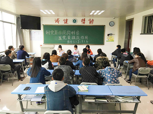 大学生思想政治教育进宿舍是加强和改进大学生思想政治工作的重要途径,为了进一步加强基层党组织建设,充分发挥学生党员的示范、带动、辐射作用,4月6日,中共西京学院博雅社区第一、二、三党支部分别召开了学生党员示范岗动员大会。