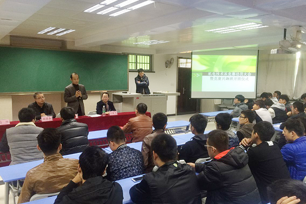 为了更好地备战和迎接2016学科竞赛,日前,机电技术系在2408教室举行学科竞赛动员会暨竞赛兴趣班开班仪式。教务处处长肖建军、允能社区主任杨德森、机电技术系主任巨春飞、竞赛兴趣班全体师生一百余人参加仪式。仪式由巨春飞主持。