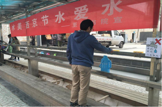 至诚书院节水节能志愿者在校园开展节水宣传活动
