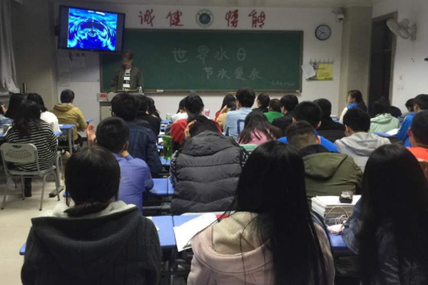 3月20日晚,由应用统计1404班主办的“节水我行动,低碳绿生活”的宣讲会在2130教室举行。同学们自发像大家介绍世界水日的由来、意义以及今年世界水日的主题。2016年3月22日是第二十四个“世界水日”,联合国确定2016年“世界水日”的宣传主题是“水与就业”(WaterandJobs)。