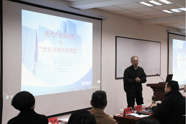 全国政策科学研究会副会长、亚欧大陆桥物流专家委主任、陕西省物流学会会长单元庄教授做了关于“现代产业流动性与世纪全球高铁物流”为主题的报告,单元庄从陕西省2015年物流发展概况入手,剖析了陕西省物流发展的问题及应该把握的重要抓手,强调在新的形势与现代产业背景下,要对现代物流业进行再认识,其引入“流动性”的概念,生动地体现了产业要素流动与生产力的关系,提出政策不应干预物流而是在于更好的服务物流。单元庄认为,高铁物流是21世纪物流的标志,技术及政策已十分迎合高铁物流的发展,符合智能化、网络化、大批量、远距离、高速度要求的唯有高铁物流。随后,单元庄就“从专业发展的角度,当前中国物流科学最急需的是什么”、“作为社会智库和科研教育性机构,需要建树怎样的目标价值与职业特质”、“作为科学研究与教育工作者,需要有怎样的目标价值”三个问题结合自身经历,勉励与会的各位要统筹全局,立足现有基础,凝聚各方面优势,坚持独立性和批判精神去“破题”。